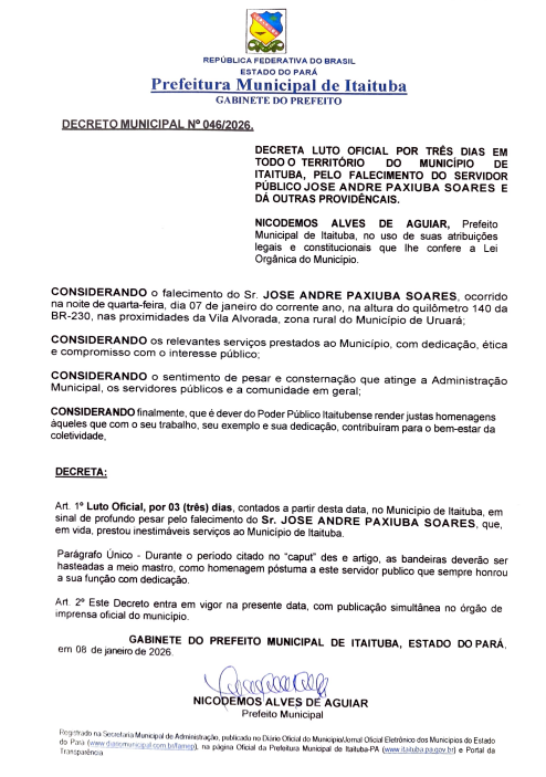 Itaituba, quarta-feira, 04 de fevereiro de 2026
